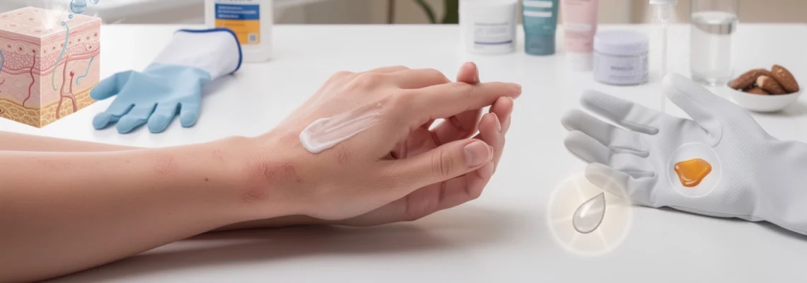 Les émollients riches en céramides et en acide hyaluronique occupent une place centrale dans la réparation de la barrière cutanée. Les céramides sont des lipides naturellement présents dans la couche cornée, jouant un rôle de « mortier » entre les cellules cutanées. En cas d’irritation chronique des mains, leur concentration diminue, ce qui accentue la perméabilité de la peau et la perte en eau. L’application régulière de crèmes contenant des céramides permet de reconstituer ce ciment lipidique, améliorant la souplesse et la résistance de l’épiderme.